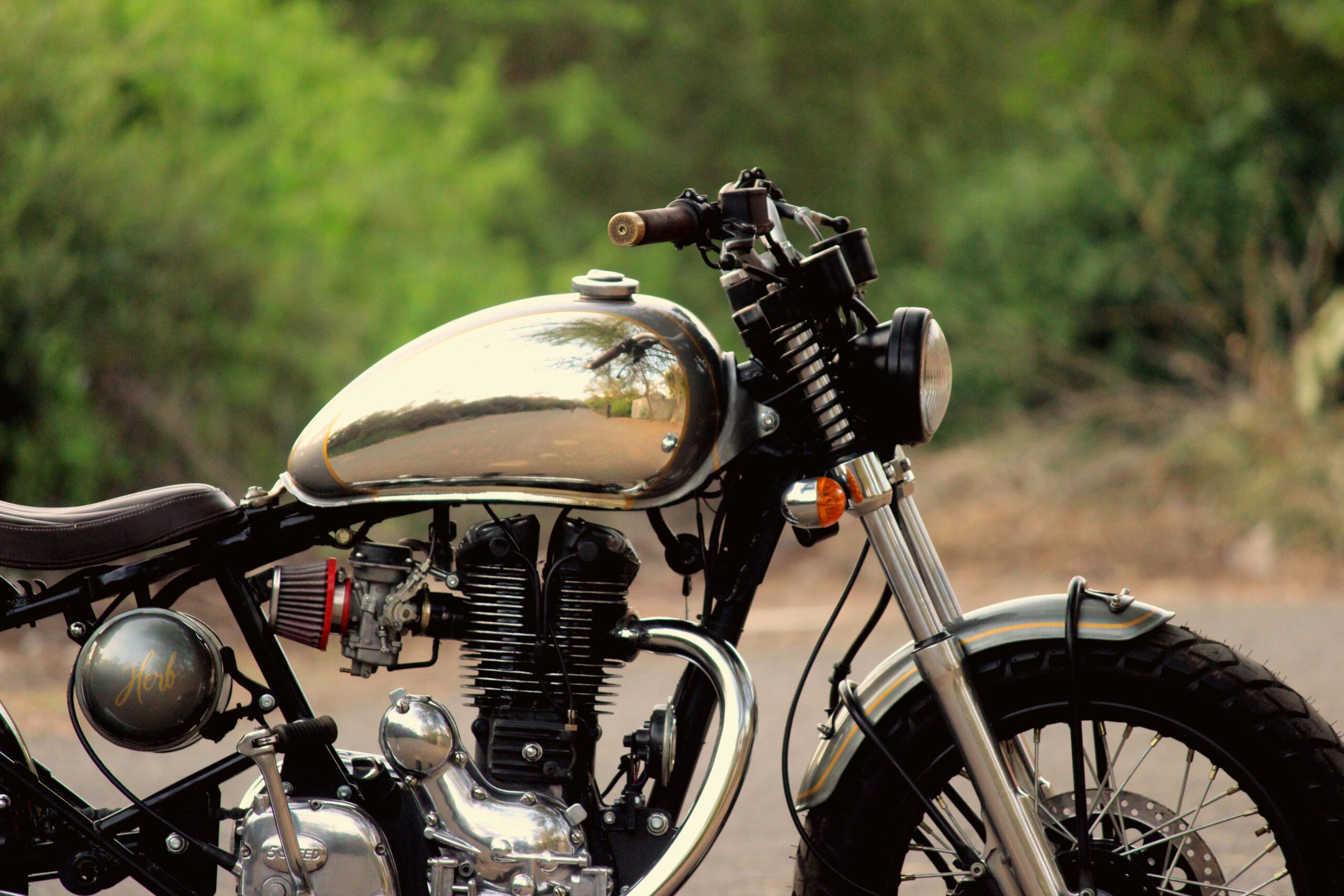Herb the bobber was built with a specific ideology. While most our bikes are long and slim we wanted this one to be short and stocky. The overall design idea was to have elements that stick to this ideology. A Fat gas tank and a small wide rear tyre just compliment this design idea. Small headlamp, leather seat, straight handlebar and minimalist electrical arrangements are typical of our builds which are almost necessary for the old school love that we harness. The tank was chromed as the donor bike was a machismo 350 and the owner wanted to keep the original soul intact.
